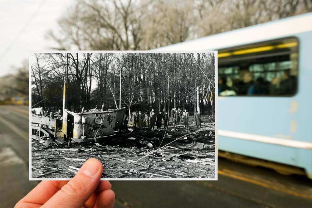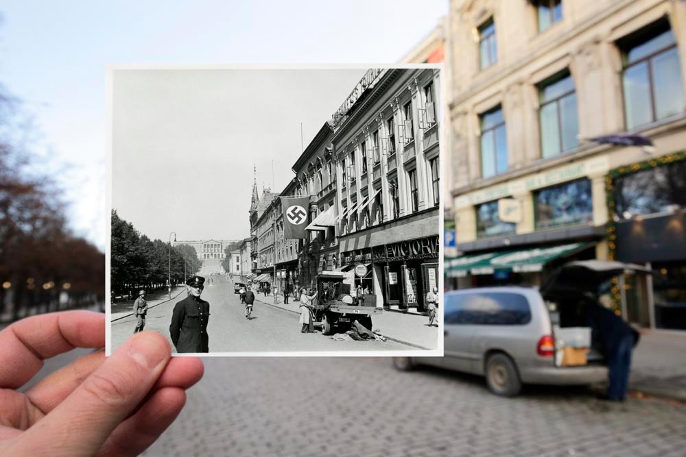 British aircraft attacked the Gestapo headquarters in Victoria terrasse on December 31, 1944. As a result of the attack, 105 people were killed – 78 Norwegians and 27 Germans. Most of the dead were in the tram that was hit by a bomb on Drammensveien .