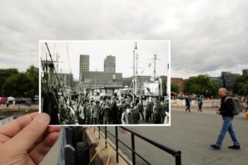 View on Nylands shipyard, todays Bjørvika, where Norwegian resistance movement Pelle performed a sabotage resulting in two damaged German ships.
