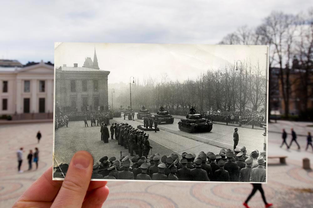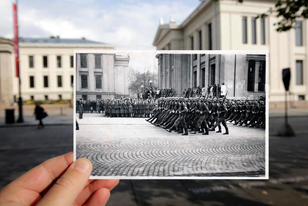 Marching soldiers and military bands became a common sight on the streets of Oslo.